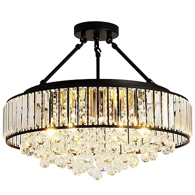 Buy Yyjlx 6 Light Modern Large Crystal Chandelier Black Metal Semi Flush Mount Ceiling Light Fixture Pendant Lamp Farmhouse For Dining Room Living Room Laundry Room Foyer Kitchen Balcony Bedroom Online In Vietnam B0962xgmth from images-na.ssl-images-amazon.com Farmhouse flush mount lights and semi flush mounts. Add to wishlist quick view new. Ceiling fan and lighting installation. When it comes to home decor, ceilings often go overlooked and underappreciated. Provide overhead lighting in your art deco interior with the feiss broderick sf347txb/ch semi flush mount light fixture. Rustic flush mount ceiling light. Farmhouse semi flush mount close to ceiling lights 209 results. This flush mount ceiling light fixture with the unique sputnik design is the perfect decoration for the modern or farmhouse home, adds industrial style elements to update for home decoration.